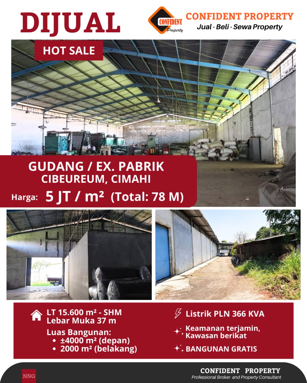 Di jual Gudang Ex pabrik Cibeureum Cimahi jarang ada Hitung Tanah saja Beli Tanah Bonus Bangunan