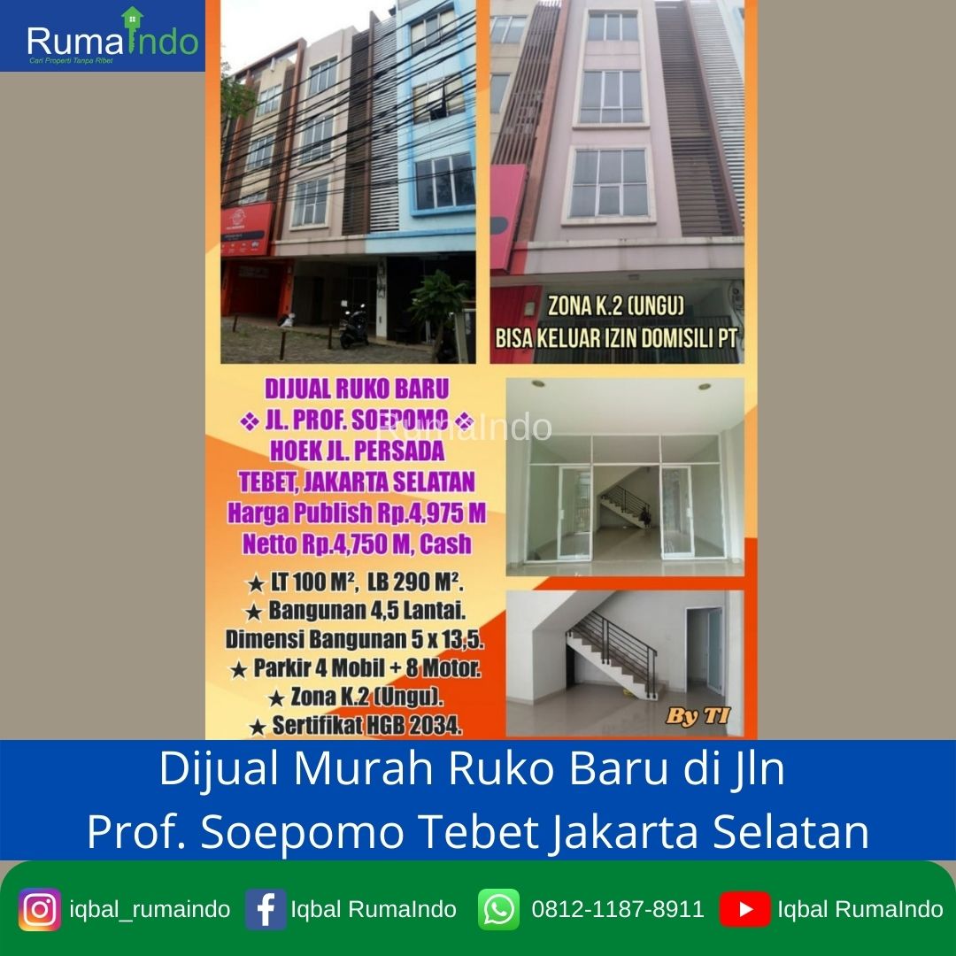 Dijual Murah Ruko Baru di Jln Prof. Soepomo Tebet Jakarta Selatan