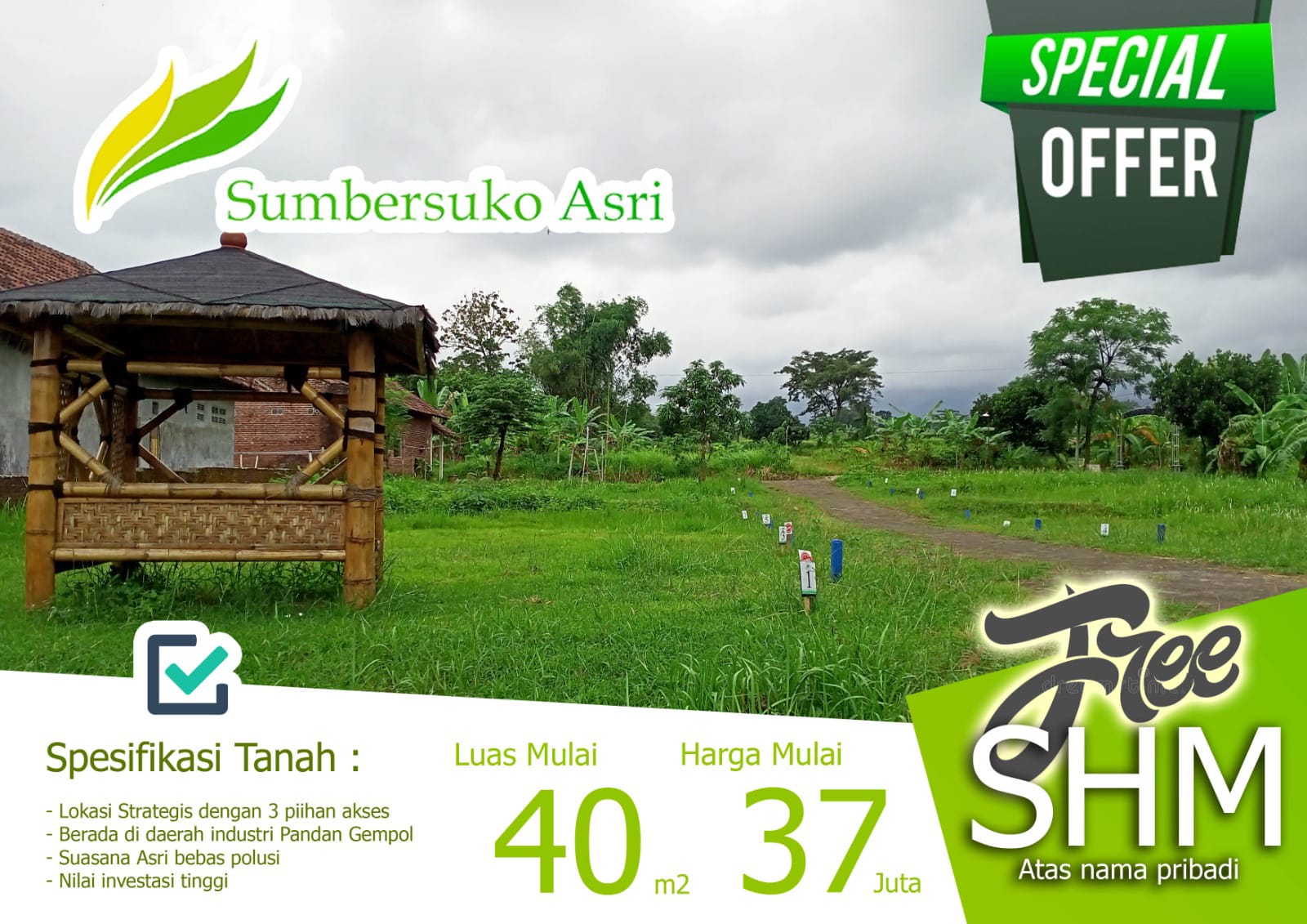 Kesempatan Langka! Kavling 47 Jutaan + Bonus Hadiah Menarik di Sumber Suko Asri