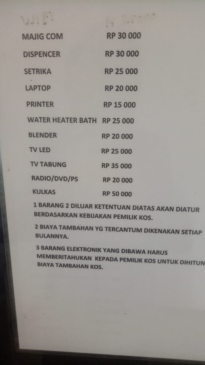 - Listrik hkl = hp, lampu,kipas.