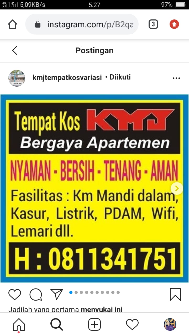 Sewa Kost-Kostan KMJ Bergaya Apartemen, di Jl,Manukan Bakti XI A , Tandes. Surabaya