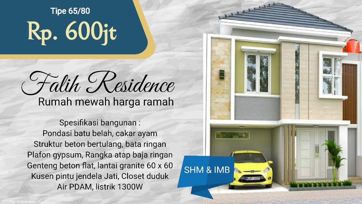 Type 65/80 : Rp 615.000.000 (SHM + IMB) 2 Lantai