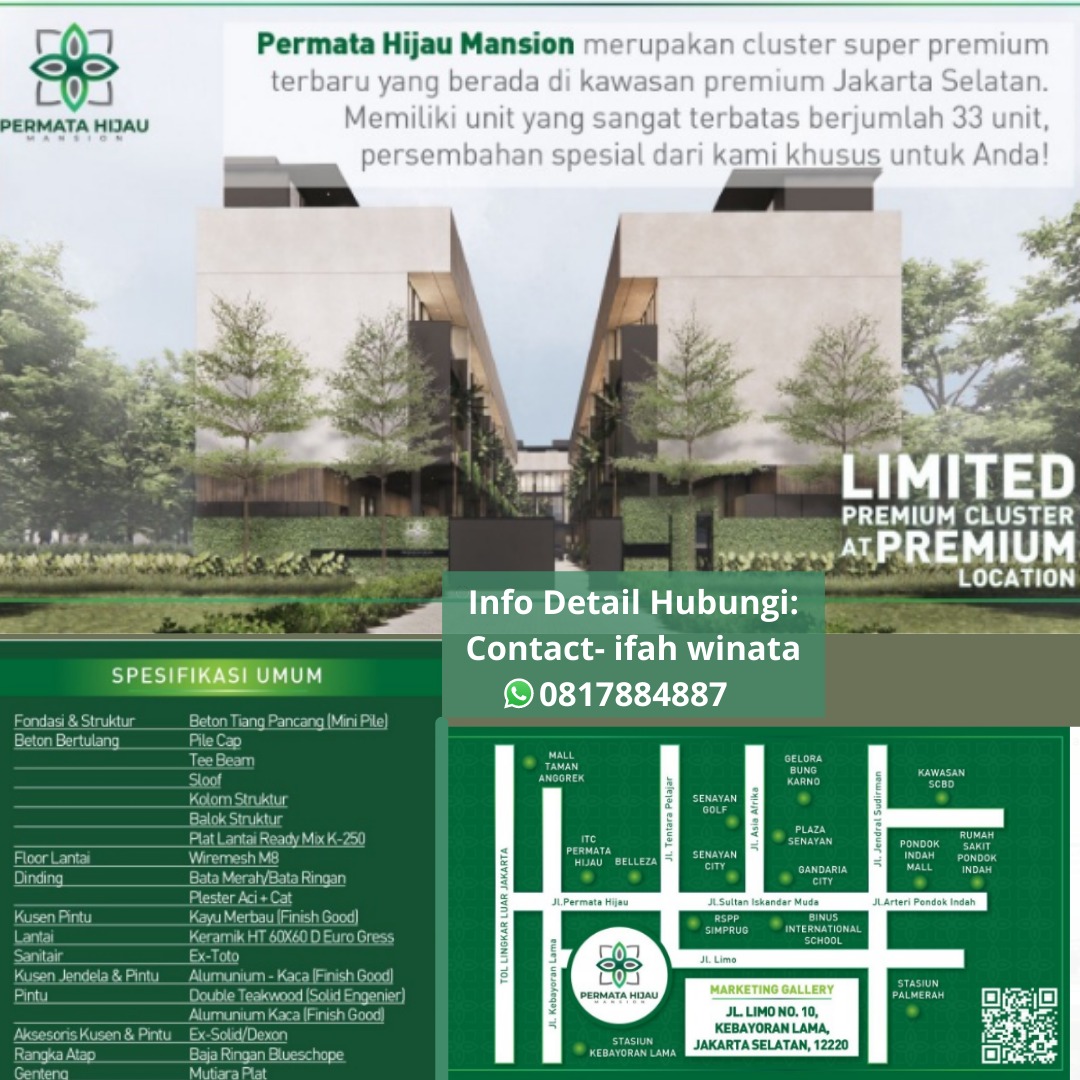 Rumah Cluster Permata Hijau Mansion Dengan Berbagai Type, Kebayoran Lama,Jaksel