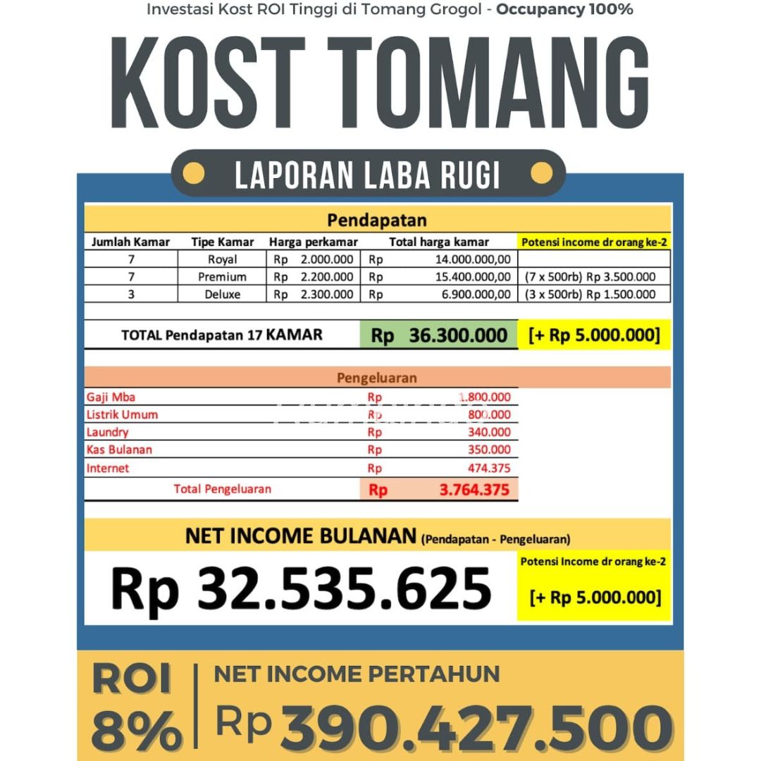 PLUS Potensi Tambahan Income Rp 5 Juta jika Kamar dihuni berdua (10 x 500rb)