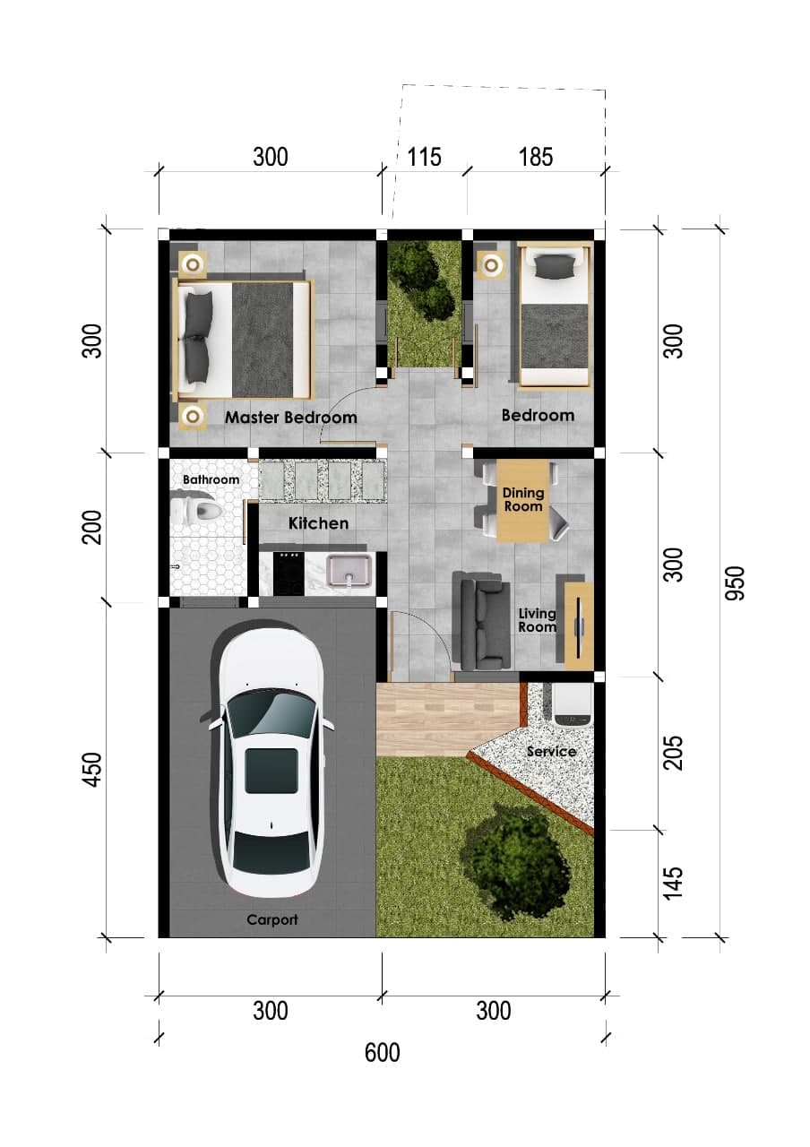 2 kamar tidur, 1 kamar mandi, ruang tamu, ruang keluarga, dapur, carport, taman, mezanine, Smartlock system RFID Card, Smart CCTV