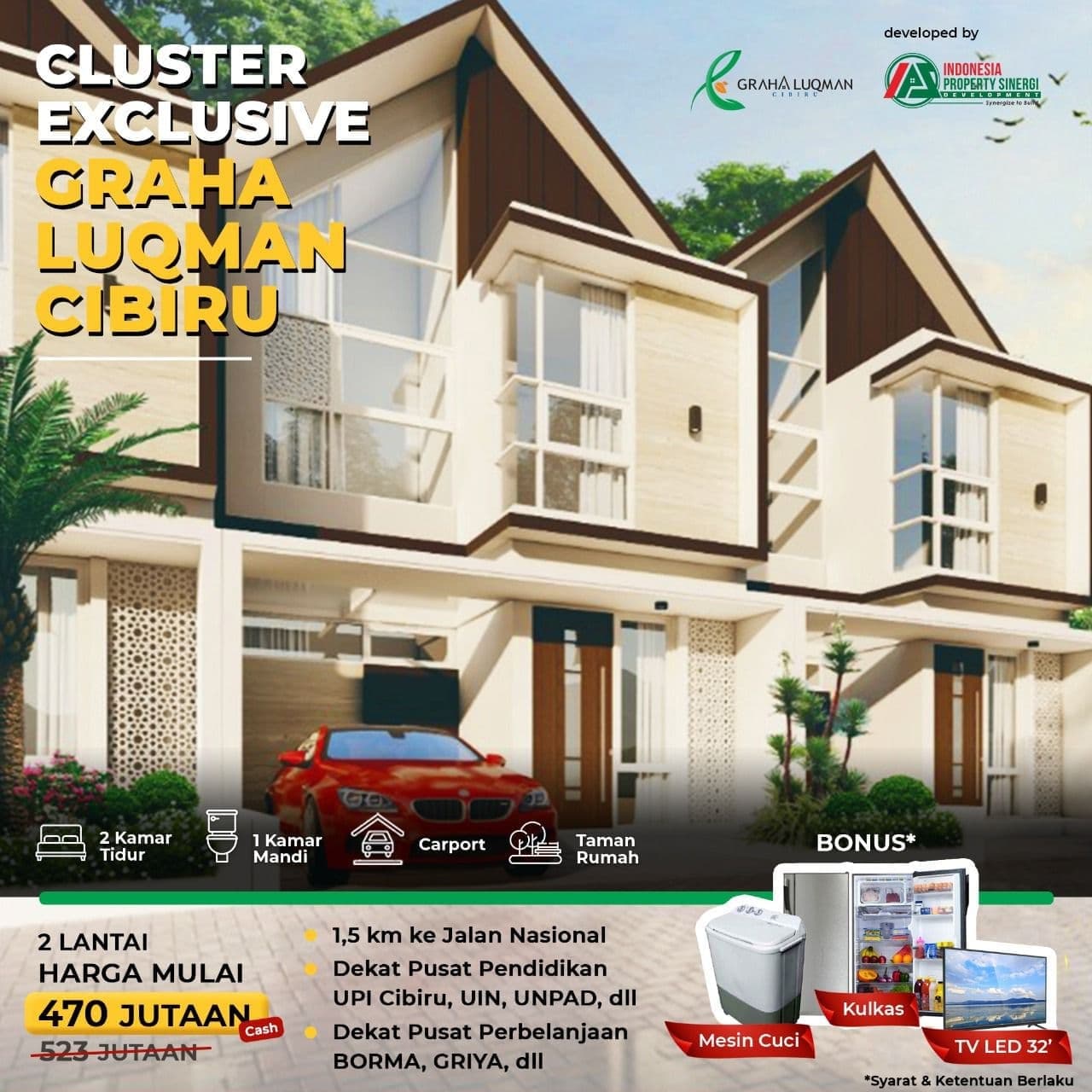 CLUSTER SYARIAH EXCLUSIVE DI CIBIRU 2 LANTAI HARGA CASH ONLY 470 JUTAAN AJA! + BONUS LAINNYA!