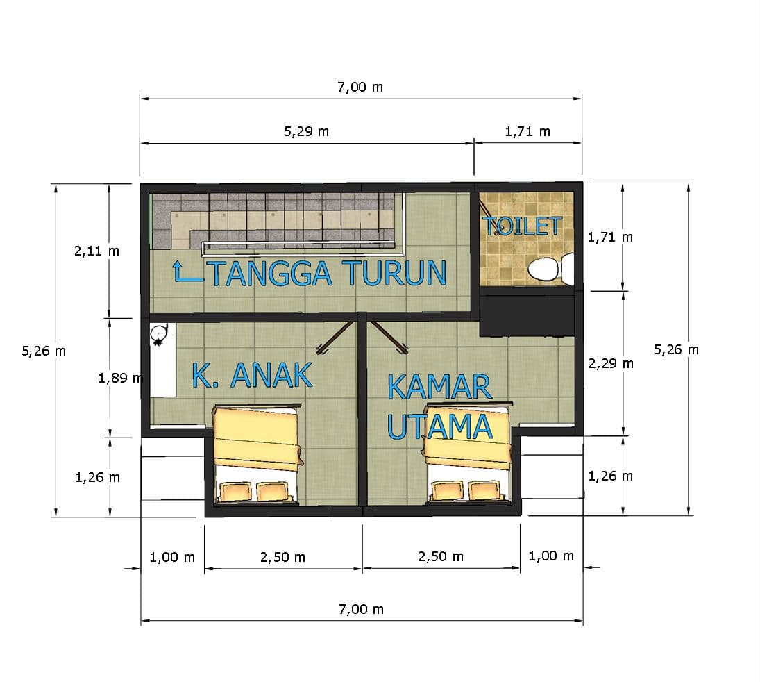 Kamar Tidur : 2 ( bisa kustom 3 )