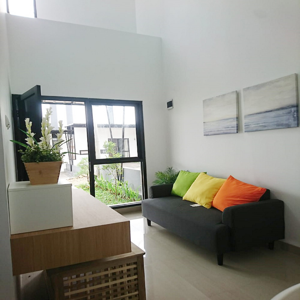 Perumahan Kaze Living, konsep perumahan bergaya Minimalis modern dengan Fasad tinggi ±6m. Tinggi Plafon bagian ruang tamu ±5,5m, sehingga bisa dijadikan Mezzanine, kamar tambahan atau tempat penyimpanan barang.