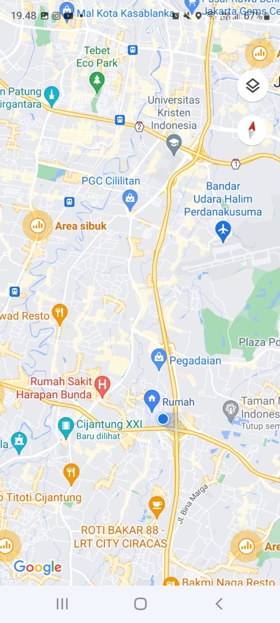 Ke PGC Cililitan, Lippo Mall Kramat Jati, Mall Tamini Square dan Graha Cijantung 15 menit
