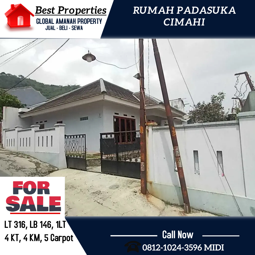 Dijual Rumah Padasuka Cimahi LT. 316/LB.145 , SHM, Lokasi sangat strategis, Akses jalan mudah, Siap Huni. Lingkungan aman dan nyaman. Bisa dibantu KPR.