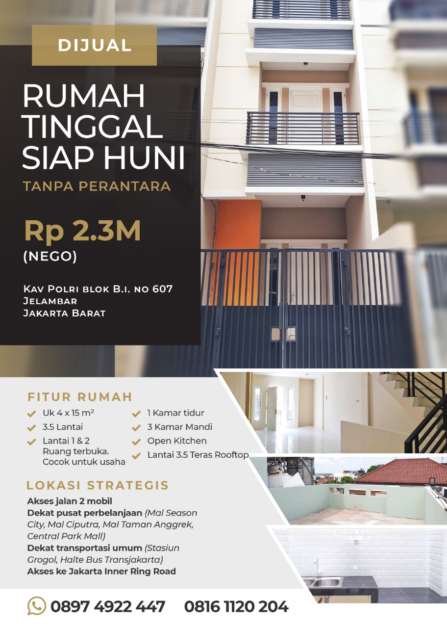 Dijual Rumah Tinggal Siap Huni UK 4x15 m2 Kavling Polri Blok B.I. No 607, Jelambar TANPA PERANTARA