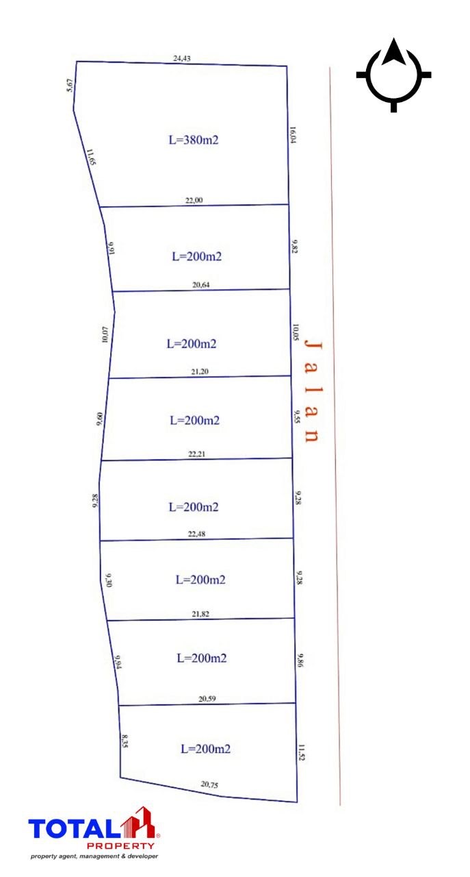 Luas kavling 200 m2 dan 380 m2