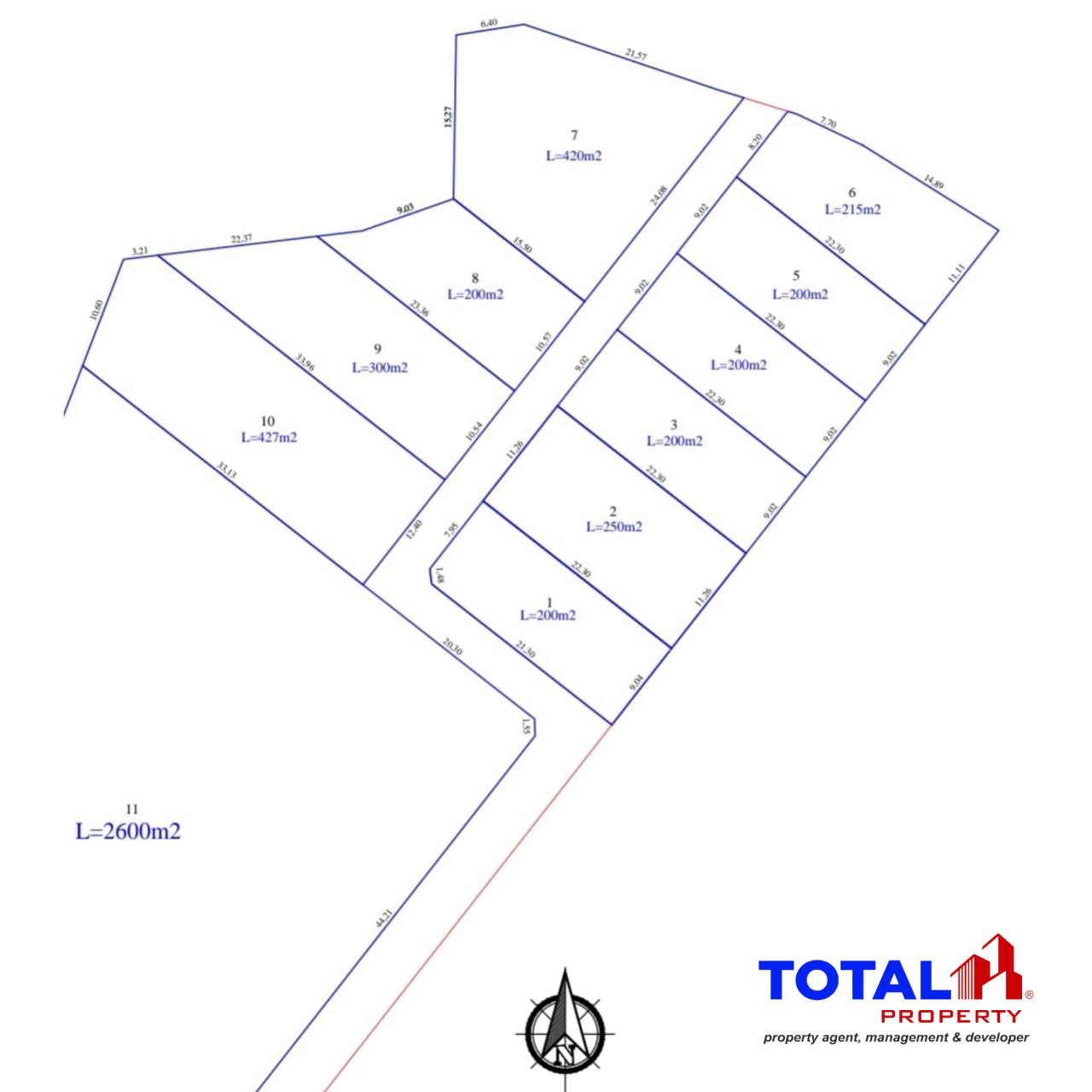 Tersedia beberapa ukuran kavling yaitu 200, 215, 250, 300, 420, 427 m2