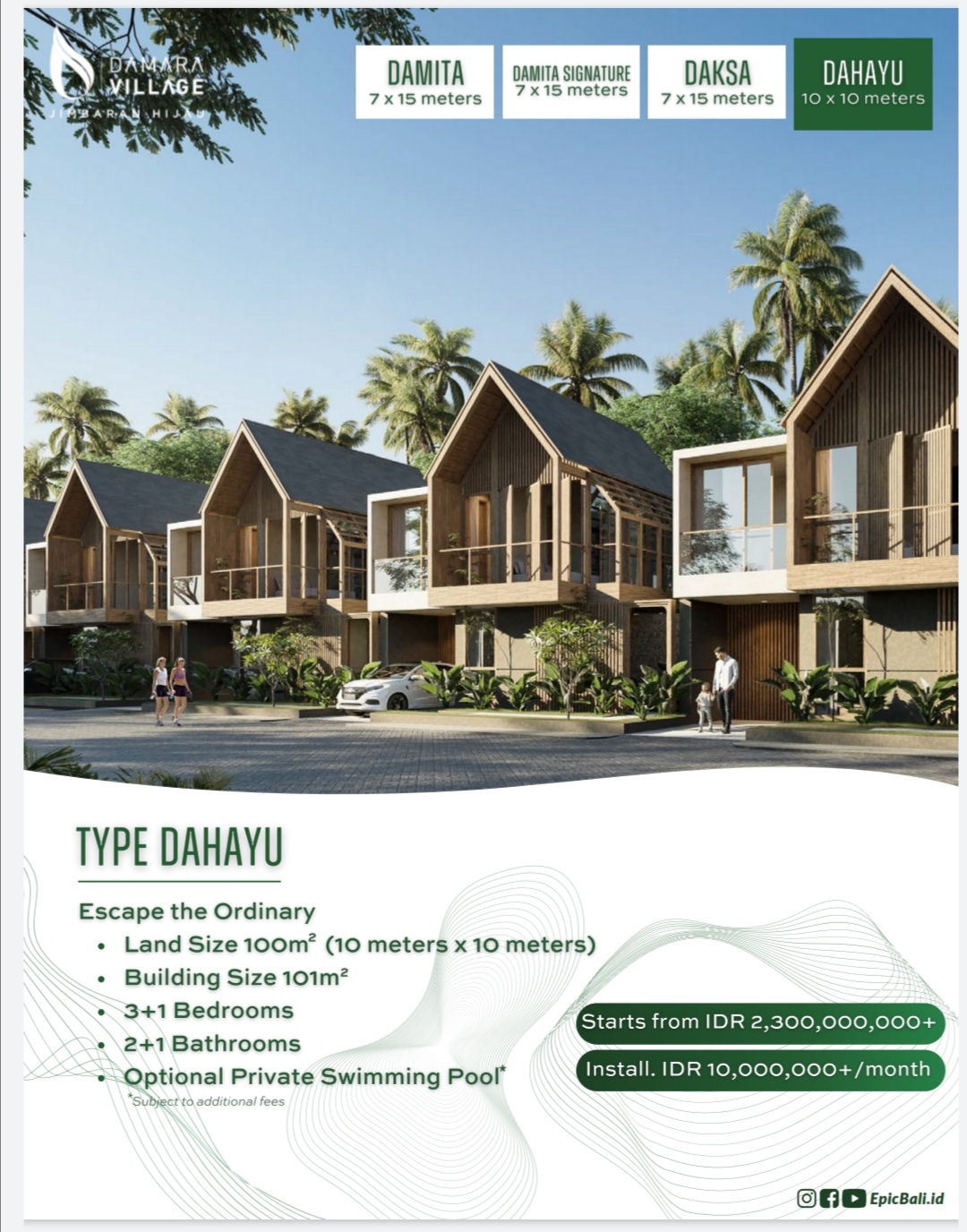 Starting price di 1.5M (type Damita) sampai dengan 2.3M (type Dahayu).