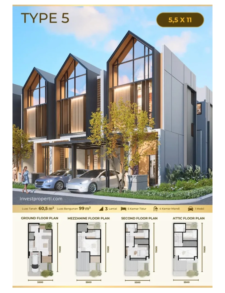 Tipe 5 dirancang dengan ukuran compaq yang memungkinkan keluarga muda bisa merancang masa depan lebih baik.