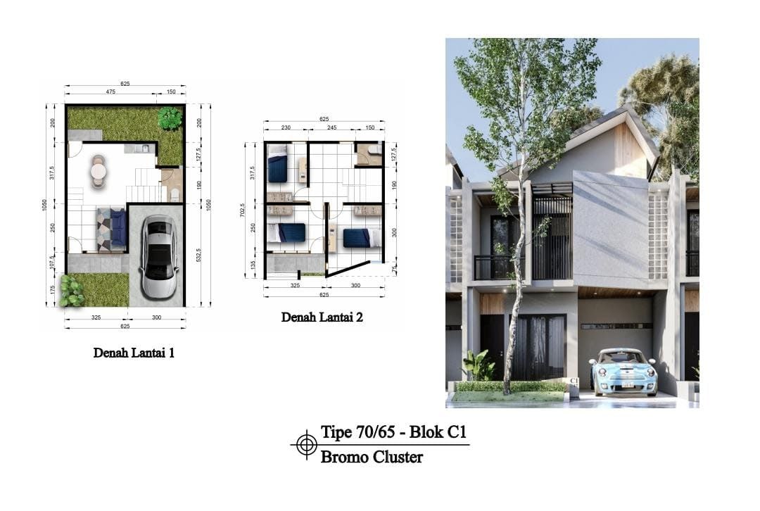 ➖ Blok C (cluster Bromo) hrg 600 jt an 2 lantai (type 70/65)