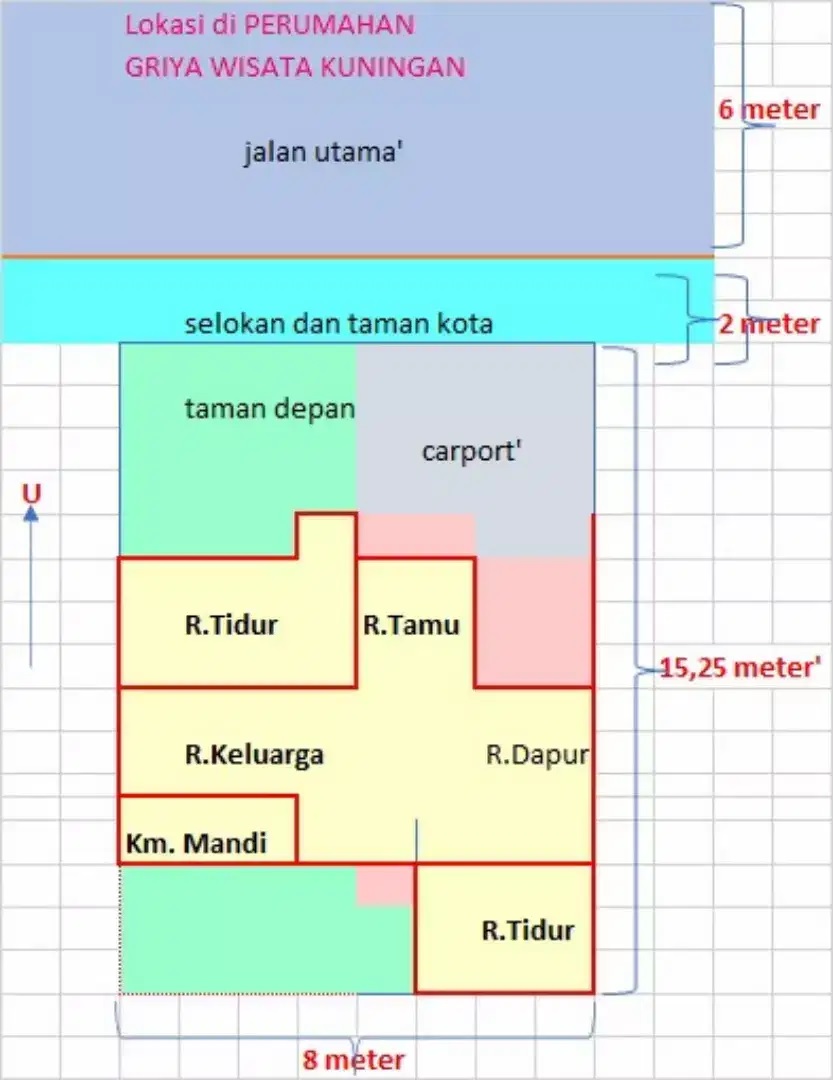 - Luas Tanah: 122 m2 (8 x 15,25 m2)