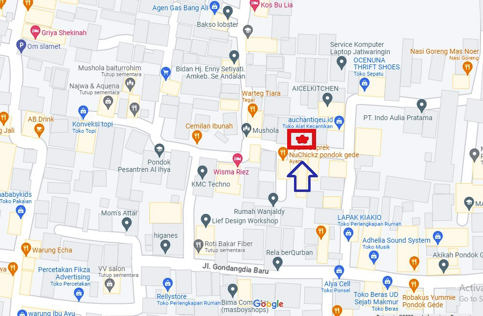 - Alamat Lokasi Rumah Kontrakan: Wisma Bunda Jati Cempaka Jl. Gondangdia No.48A RT.03/RW.09 Kel. Jaticempaka, Kec. Pondok Gede, Kota Bekasi 13620
