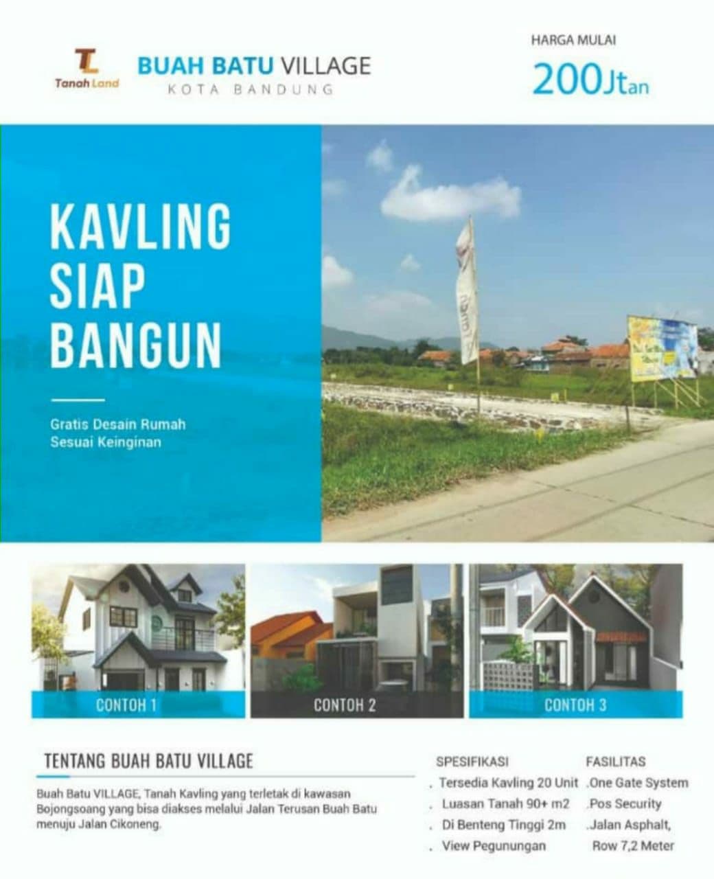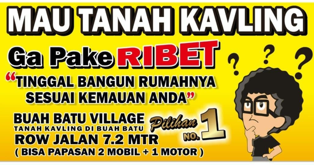 KAVLING TANAH BESAR EXCLUSIVE DI TERUSAN BUAH BATU CASH ONLY 260 JUTAAN. Mauuu?? Langsung survey yuk dan booking hanya 1 Juta sudah bisa pilih Kavling + Bonus Design Rumah + Cashback 10 Juta + Bibit Pohon Mangga.