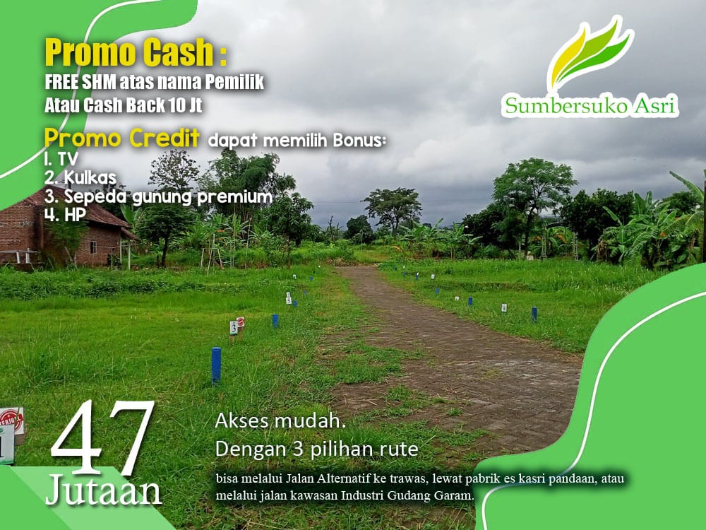 Temukan keindahan alam yang menakjubkan di kavling Sumbersuko Asri. Harga mulai 47 jutaan. Dengan pemandangan pegunungan yang memukau, lingkungan yang asri, dan dekat dengan pusat industri, ini adalah tempat yang sempurna untuk membangun impian Anda.