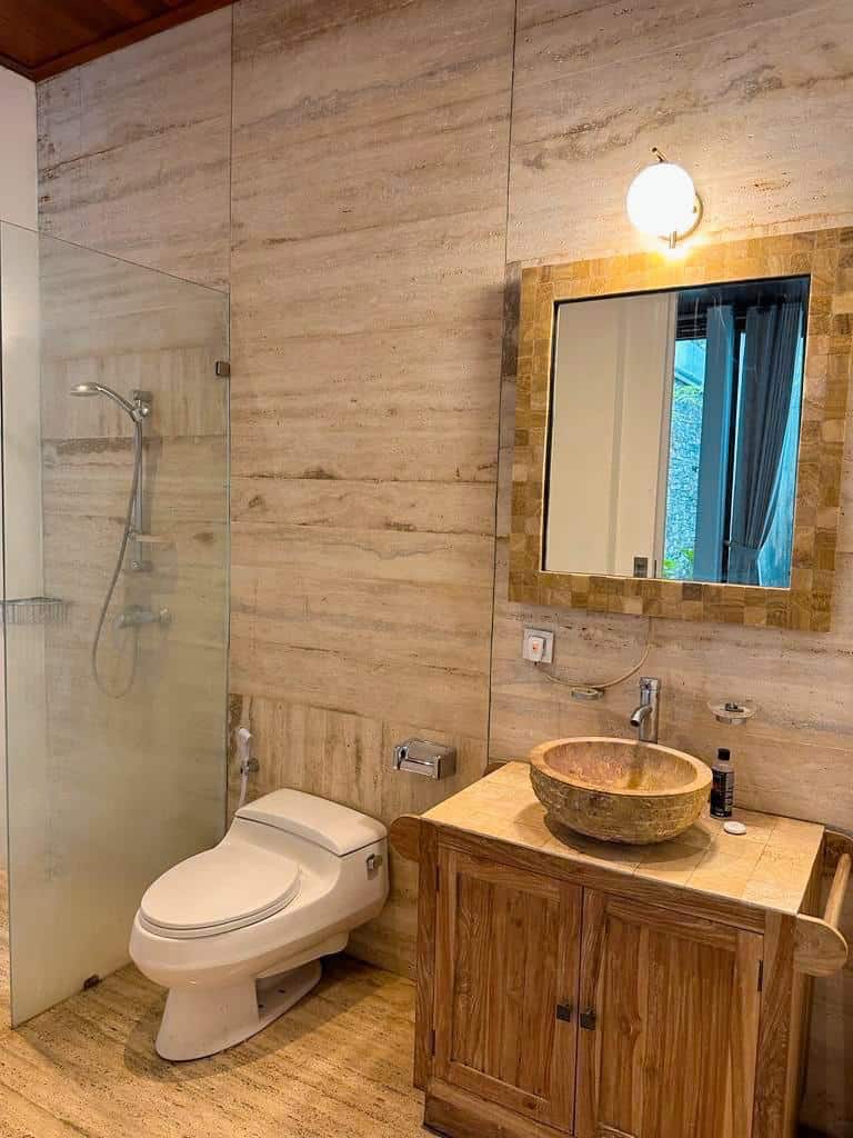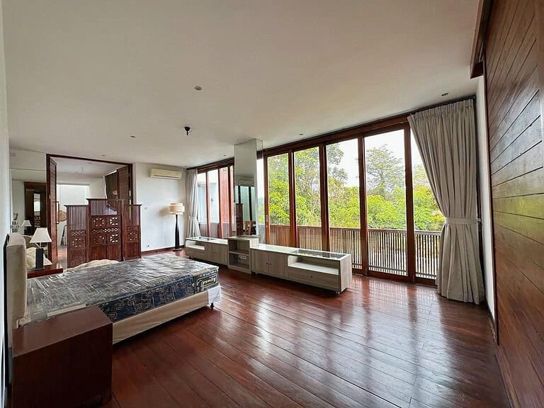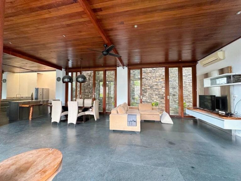 This villa also features a 7×3.5 meter swimming pool, suitable for relaxing amidst the tropical atmosphere of Sanur. The ground floor uses polished andesite, while the second floor and lower floor ceiling are made of solid wood, creating a warm feel. 12,000 watts of electricity and a water source from a drilled well.