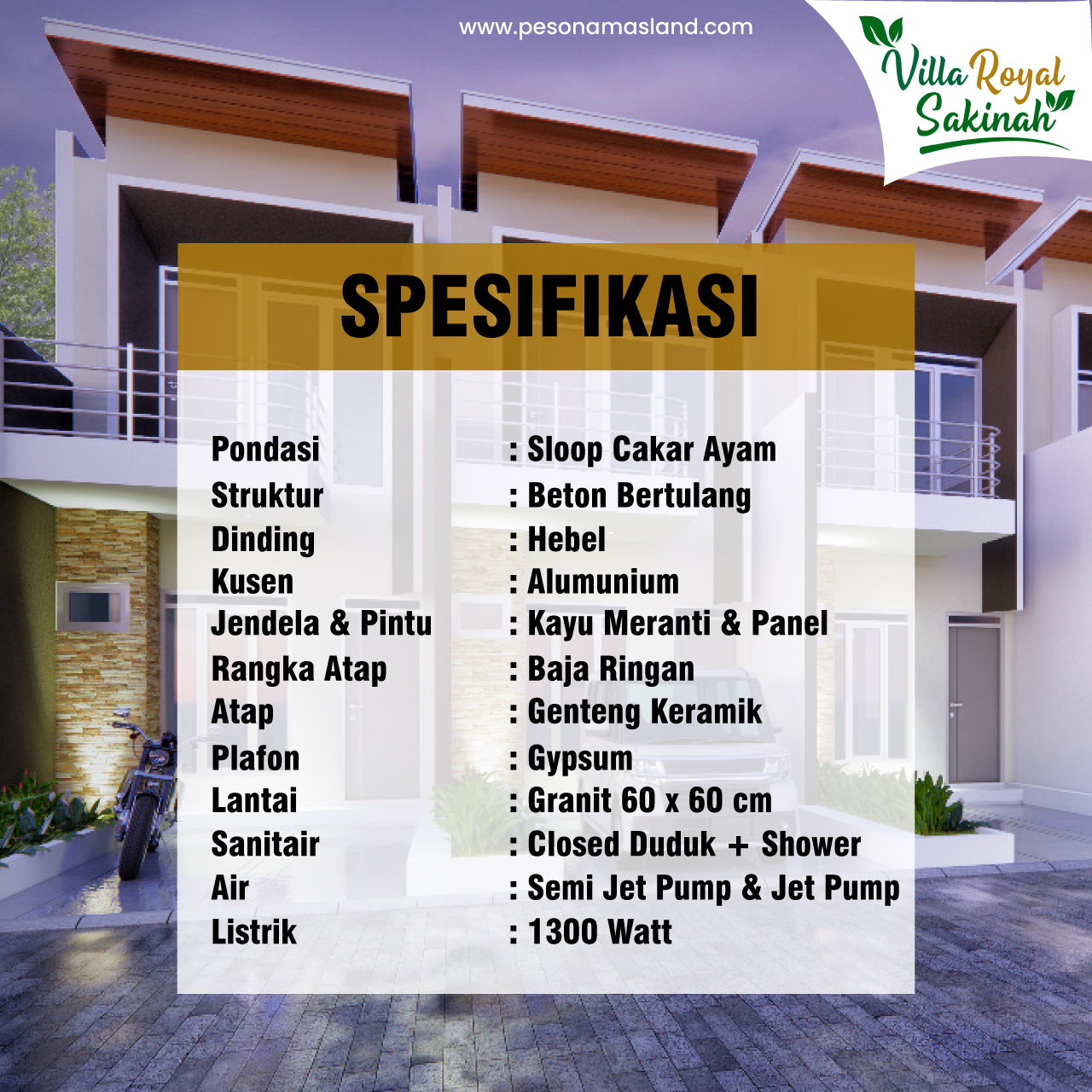 Villa Royal Sakinah Hadir dengan Rumah 2 Lantai dengan DP Hanya 5 Jtan dan cicilan cuma 3 Jutaan sudah free all Biaya.