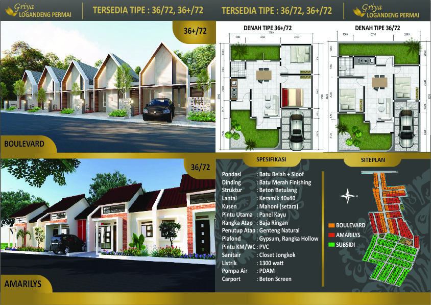Luas tanah mulai 72 m² - 158 m².