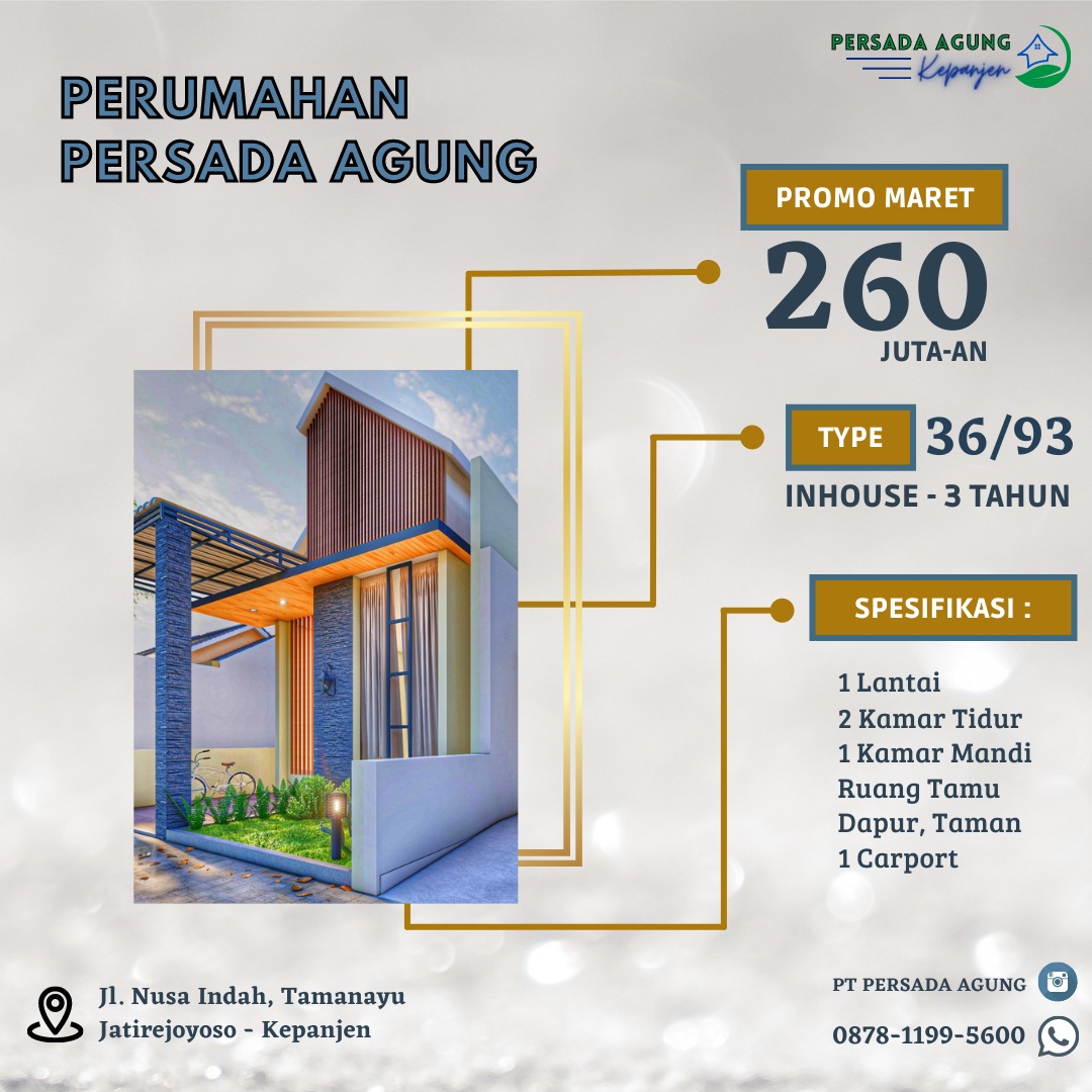 Perumahan Persada Agung Kepanjen | Jl. Nusa Indah Tamanayu-Desa Jatirejoyoso-Kec. Kepanjen, Malang