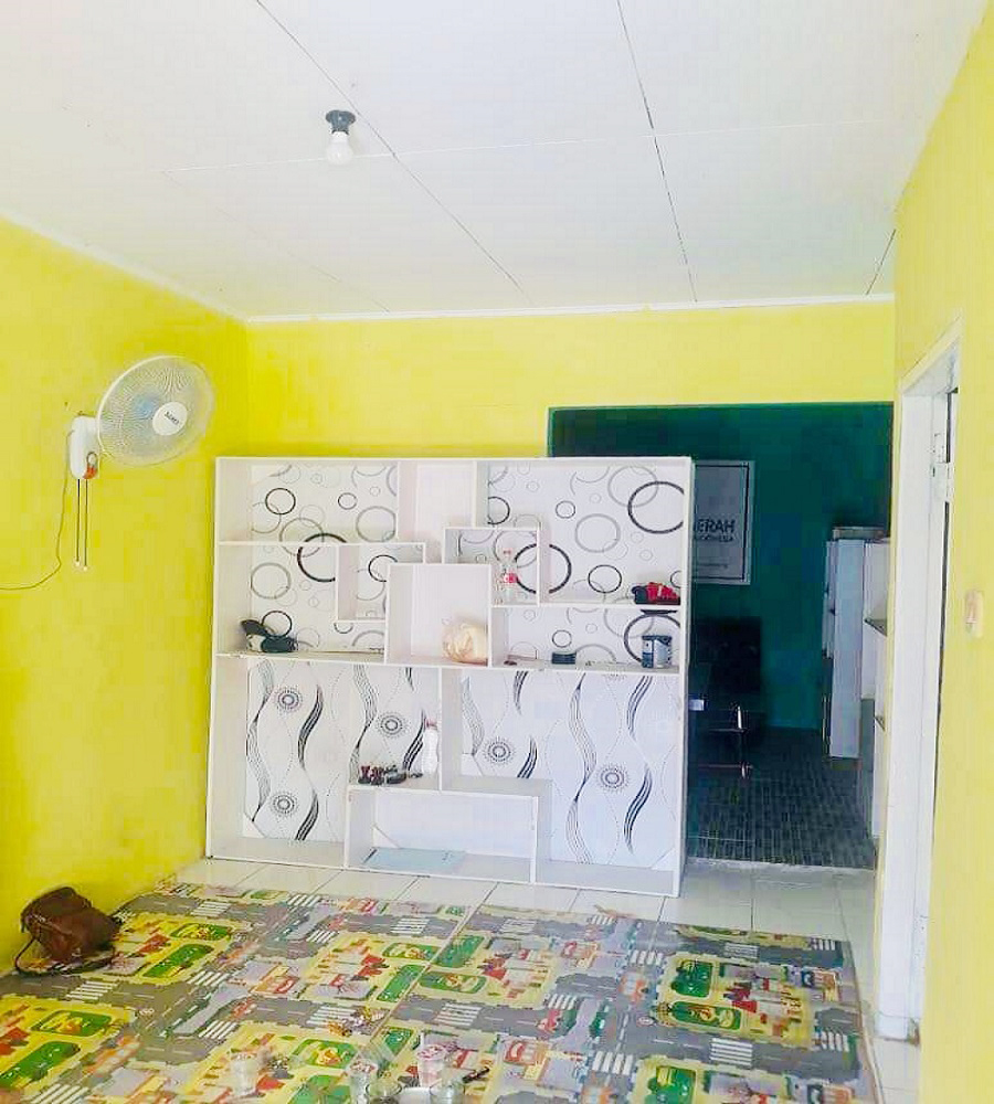 2 kamar tidur, 1 kamar mandi, dapur, ruang tamu, carport, taman
