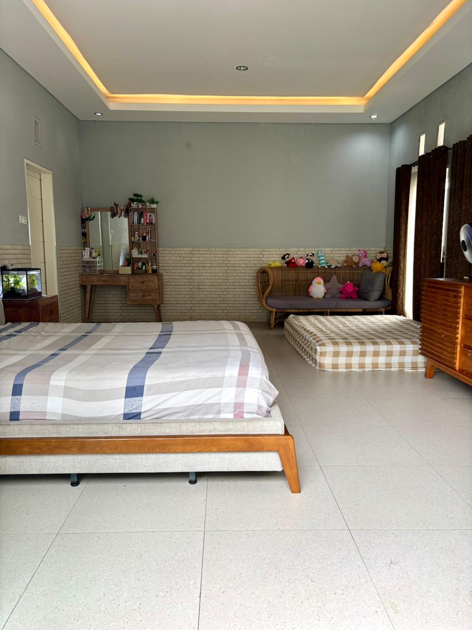 - 3 kamar tidur (1 kamar utama dengan wardrobe & kamar mandi dalam)