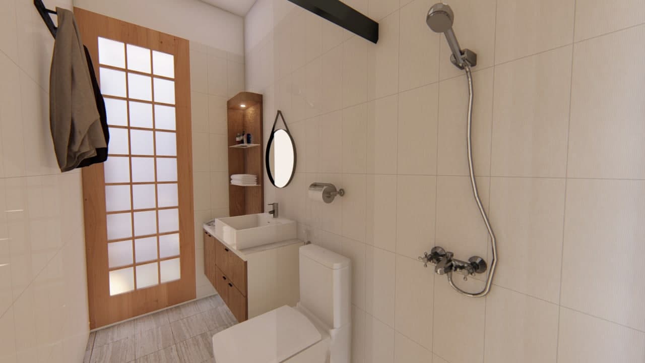 3 kamar tidur, 2 kamar mandi, dapur, carport, ruang tamu, ruang keluarga, rooftop