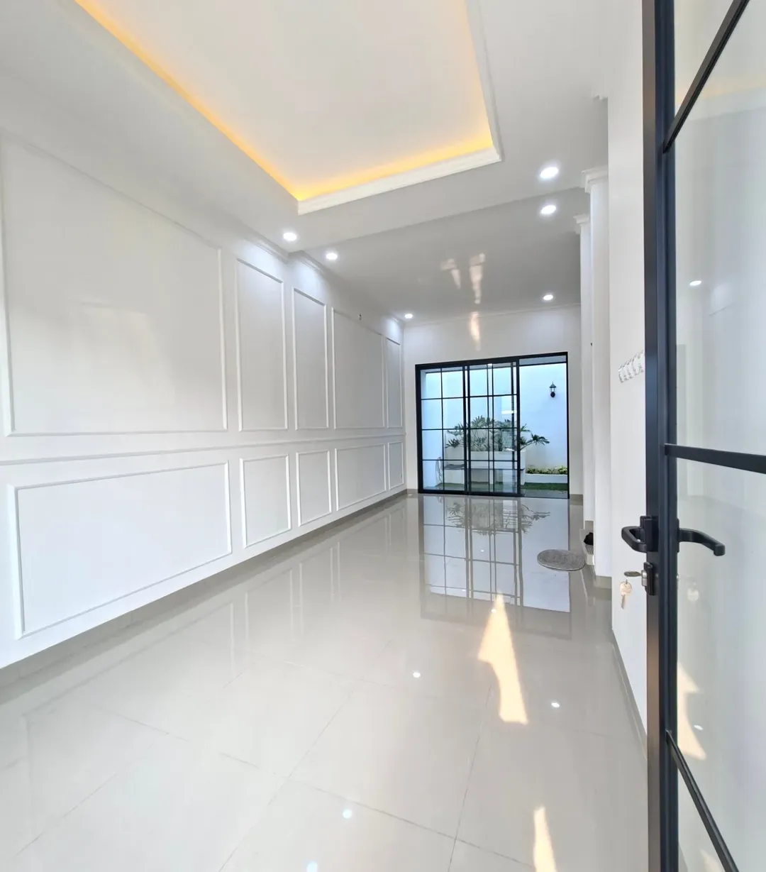 Dijual rumah di wilayah yang asri. Properti 2 lantai bergaya minimalist modern ini berada di lingkungan perumahan/komplek.