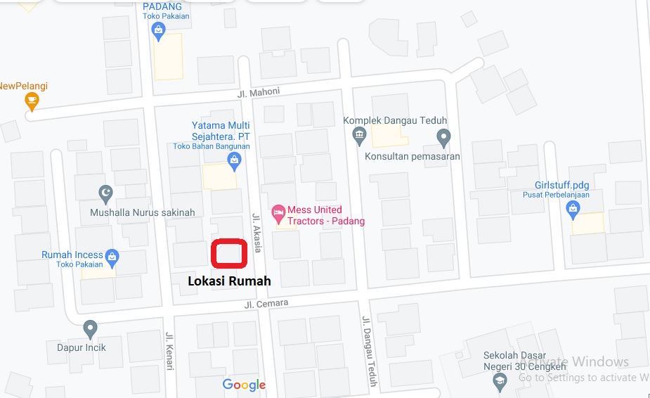 - Alamat Lokasi Rumah: Komplek Dangau Teduh Jl. Akasia, Kel. Cangkeh Nan XX, Kec. Lubuk Begalung, Kota Padang 25159