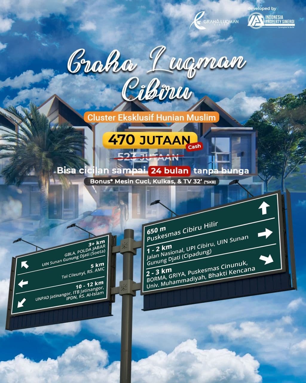 Hunian Muslim 2LT Exclusive di Cibiru, Kota Bandung Harga Dibawah 1M. Cukup dengan 470 Jutaan aja Bisa Punya Rumah 2LT + Bonus bonusnya. Ga Percayaa?? Langsung aja yuk Survey dan Booking sebelum Harga Naik dan Promo Habis!