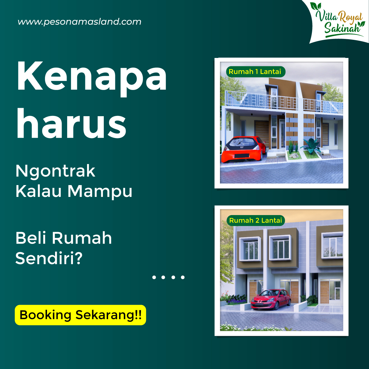Villa Royal Sakinah Hadir dengan Rumah 2 Lantai dengan DP Hanya 5 Jtan sudah free all Biaya.