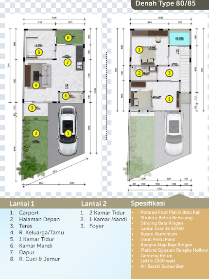 Luas Bangunan Tersedia: 80 m² & 70 m²