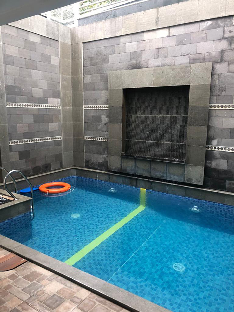 Kolam renang air hangat + kamar bilas + water treatment
