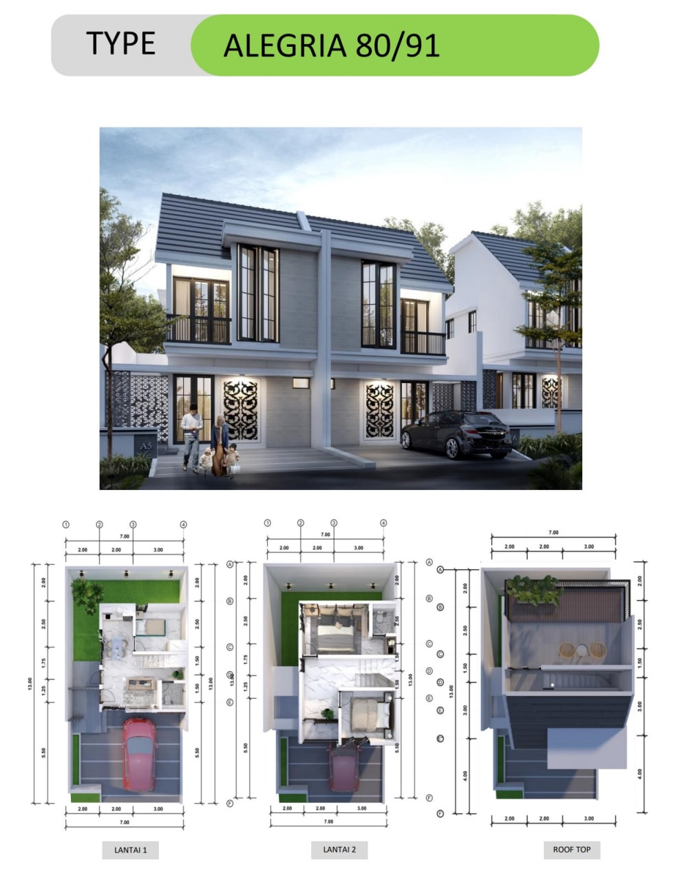 *Alesha 2 lantai + roof top 65/78 : 700 JTAN*