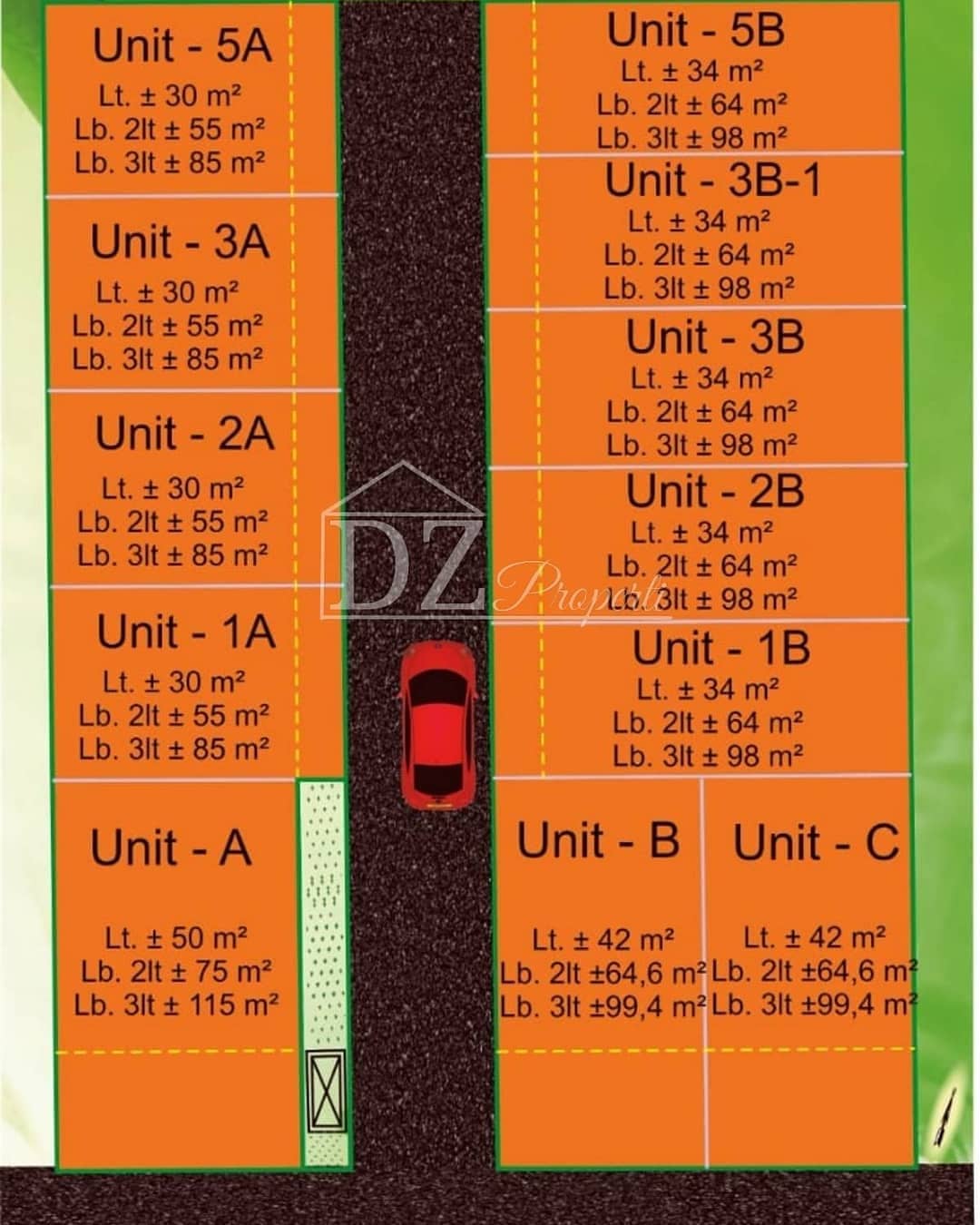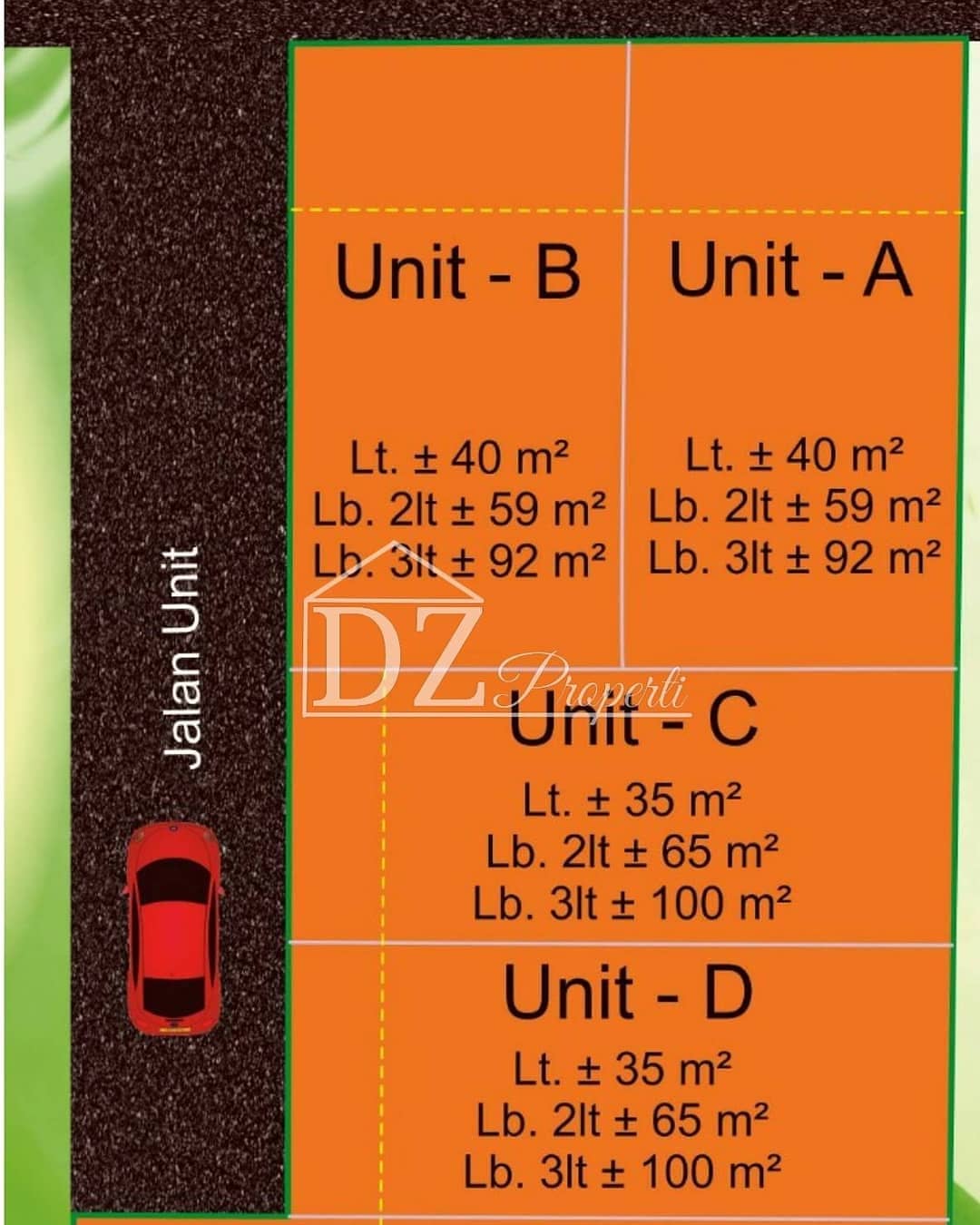 Dinding bata merah & hebel, lantai Granit