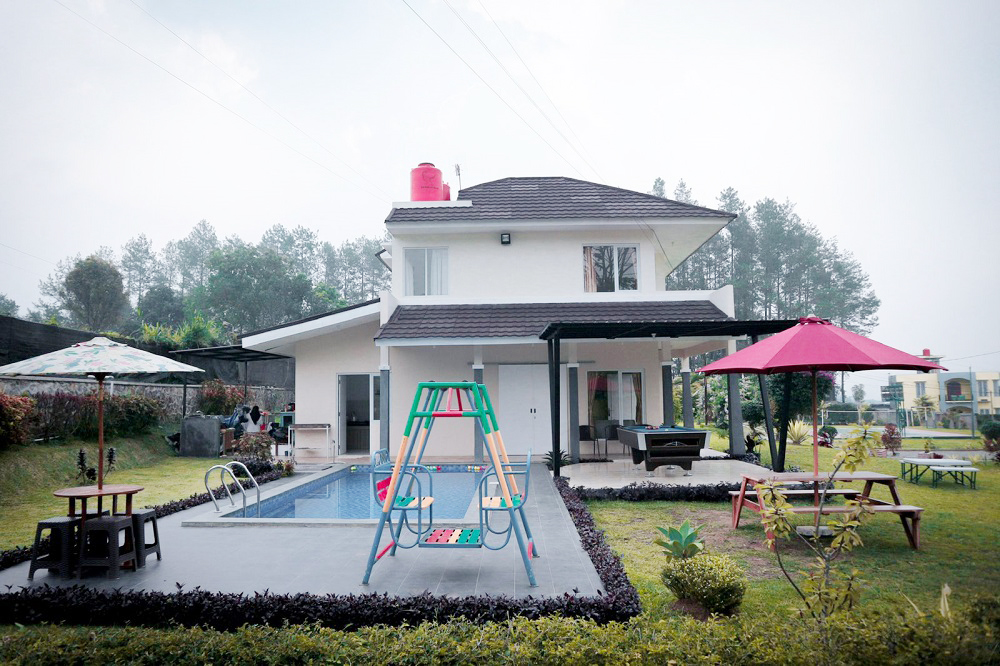 Sewa Villa di Cisarua Bogor fasilitas lengkap ruangan bersih dengan Kolam Renang Dekat Taman Safari, Kebun Teh Cisarua, Agrowisata Gunung Mas.