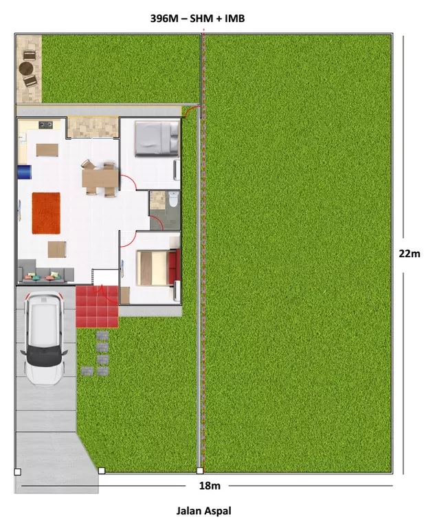 - Dimensi Tanah: Muka menghadap jalan 18m x 22m Kebelakang