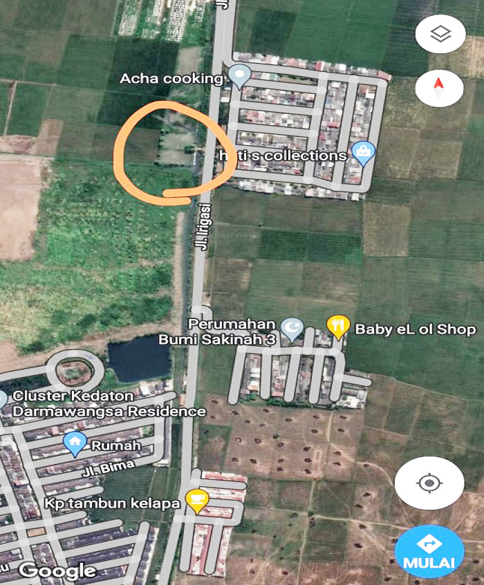 Alamat Lokasi Tanah: Dusun II RT.007/RW.004, Desa Satriamekar, Kec. Tambun Utara Kab. Bekasi. Batas tanah selatan berdampingan tanah Perumahan Darmawangsa dan ada rencana dibuka gerbang belakang untuk Darmawangsa potong jalan menuju Tol Gabus.