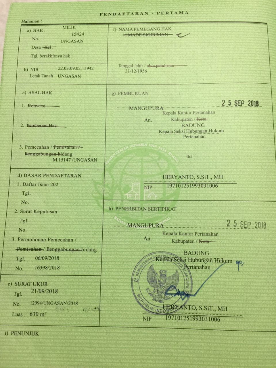 Luas tanah 630 m²/6,3 are