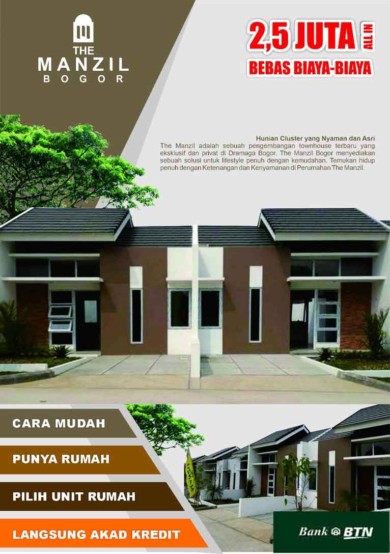 Mulailah kehidupan baru kamu yang berkualitas di The Manzil Bogor. Sebuah proyek perumahan baru yang asri, nyaman dan bebas banjir dikota Bogor. Hunian impian untuk anak - anak tumbuh dan berkembang, tujuan pulang kerja, tempat berbagi kasih sayang, menumpahkan kesedihan dan yang paling utama tempat berindung serta istirahat paling nyaman. Berlokasi di Jalan Raya Ciherang - Dramaga. RS Karya Bhakti Pertiwi dan Kampus Institut Pertanian Bogor / IPB Dramaga. Hanya memerlukan waktu 15 - 20 menit menuju Toll Bogor Outer Ring Road (BORR), Memerlukan waktu 15 - 20 menit menuju stasiun Bogor, RS Hermina, RSIA Bunda Suryati, Kampus Universitas Nusa Bangsa, Universitas Ibnu Khaldun, dan Universitas Terbuka Bogor. Dan memerlukan waktu 20 menitan menuju Transmart Yasmin, Plaza Indah Bogor, dan Bogor Square.