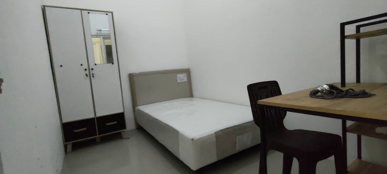 Setiap kamar dilengkapi springbed, meja belajar, kursi dan almari