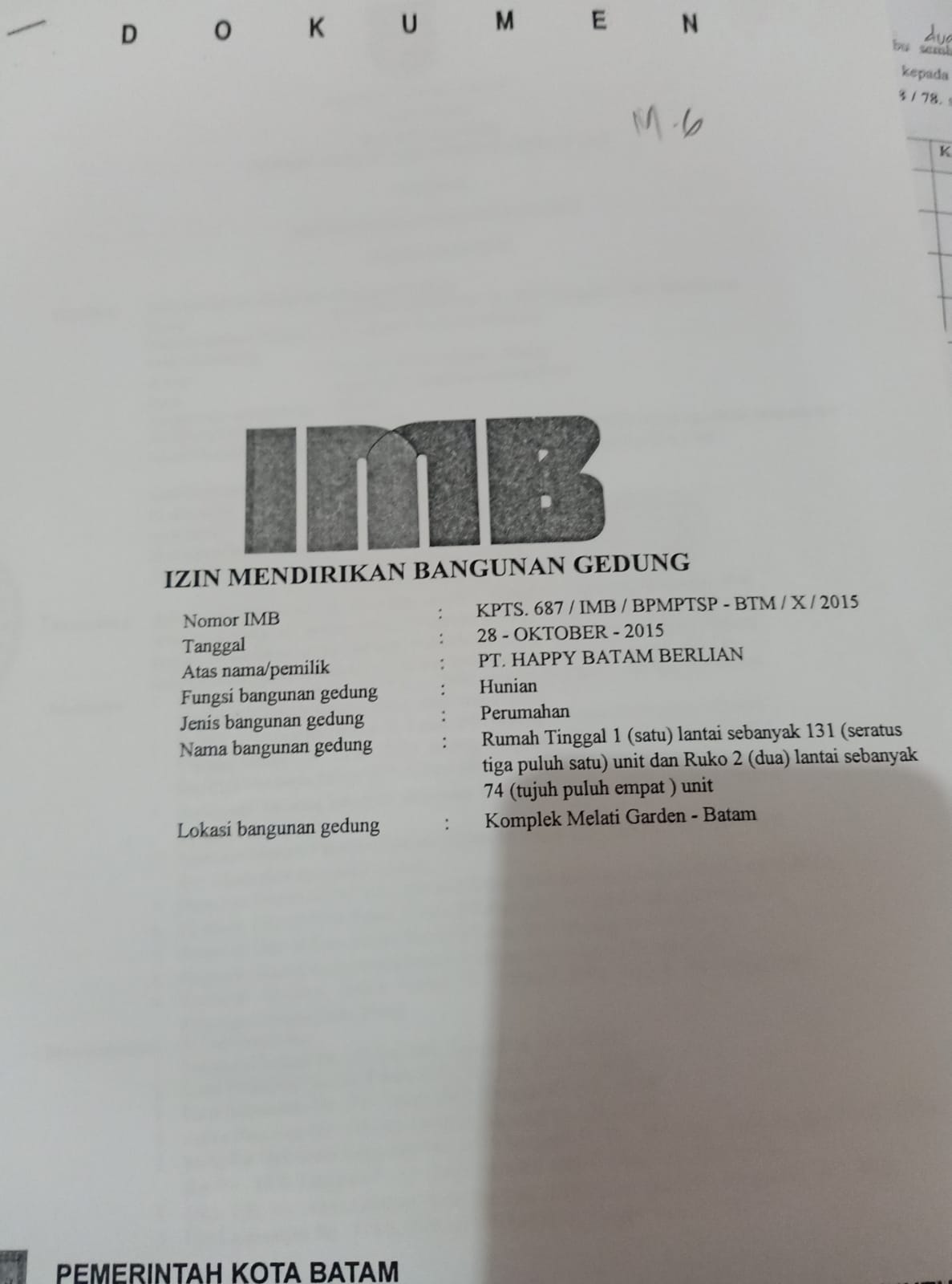 Lokasi : Perumahan Cluster Melati Garden 2 Blok M6 Sekupang, Batam Kepulauan Riau