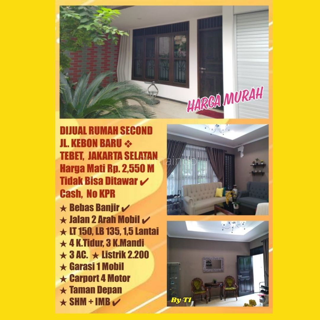 Dijual Murah Rumah di Jln Kebon Baru Asem Baris Tebet Jakarta Selatan