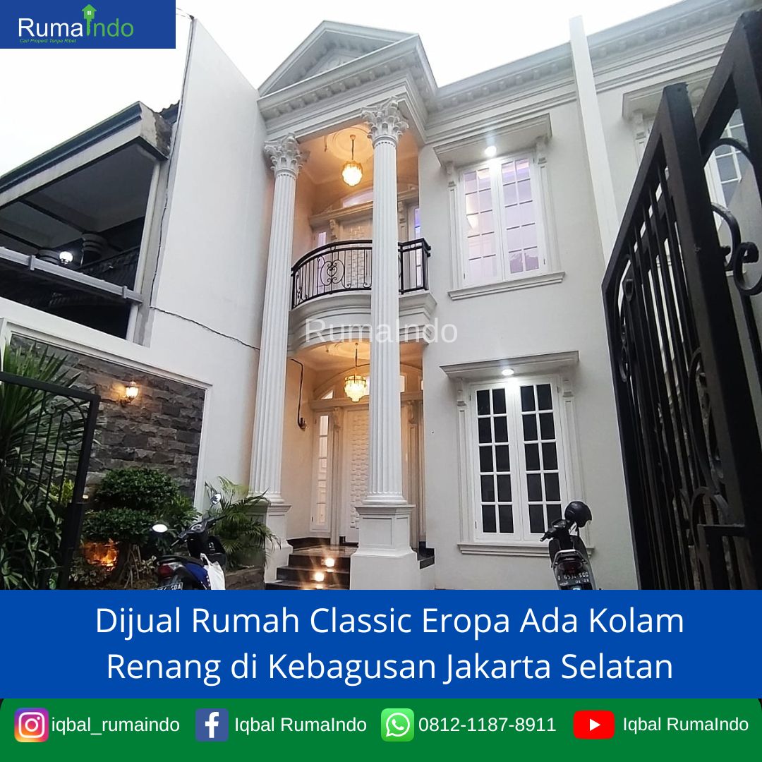 Dijual Rumah Classic Eropa Ada Kolam Renang di Kebagusan Jakarta Selatan