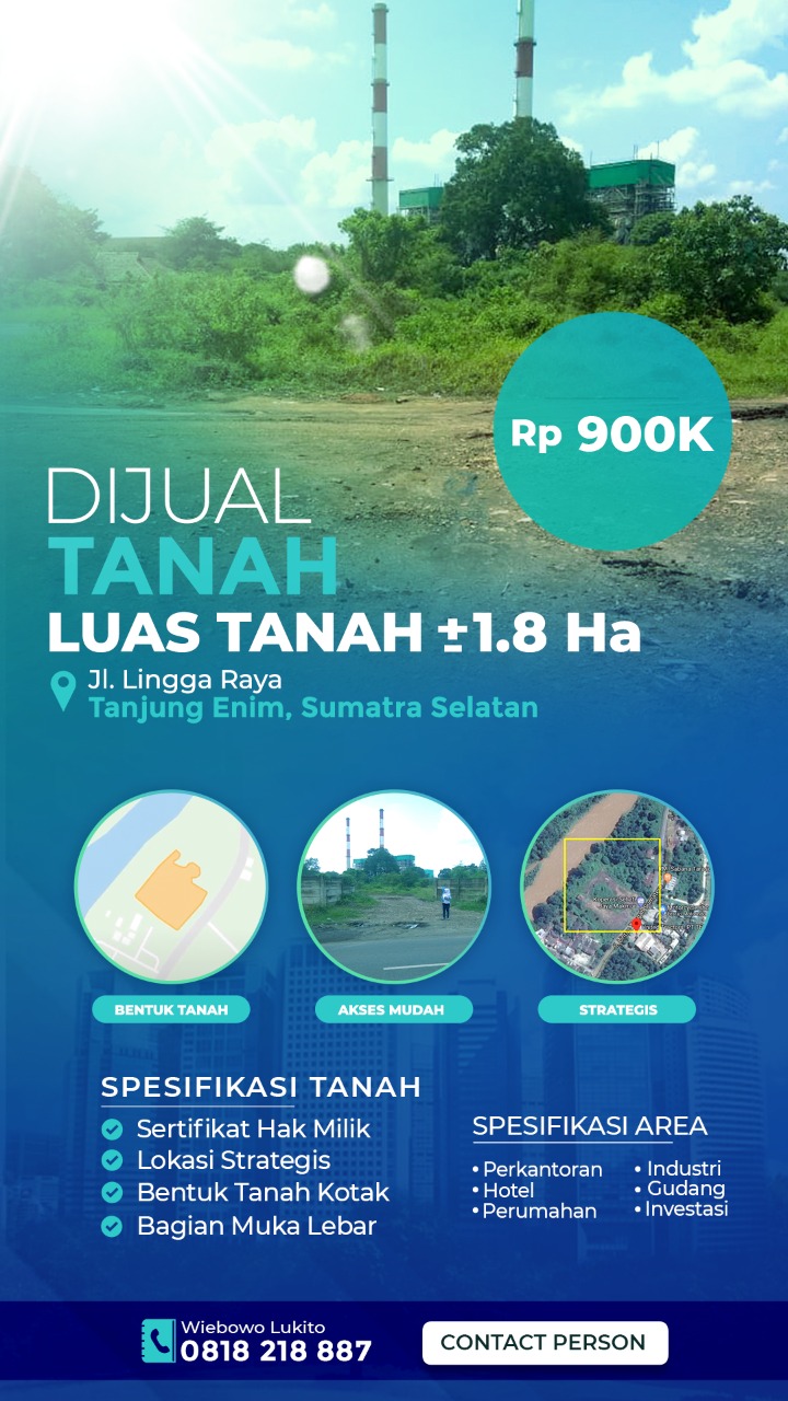 Dijual Tanah di Tanjung Enim, Muara Enim Seluas ±1,8 Ha