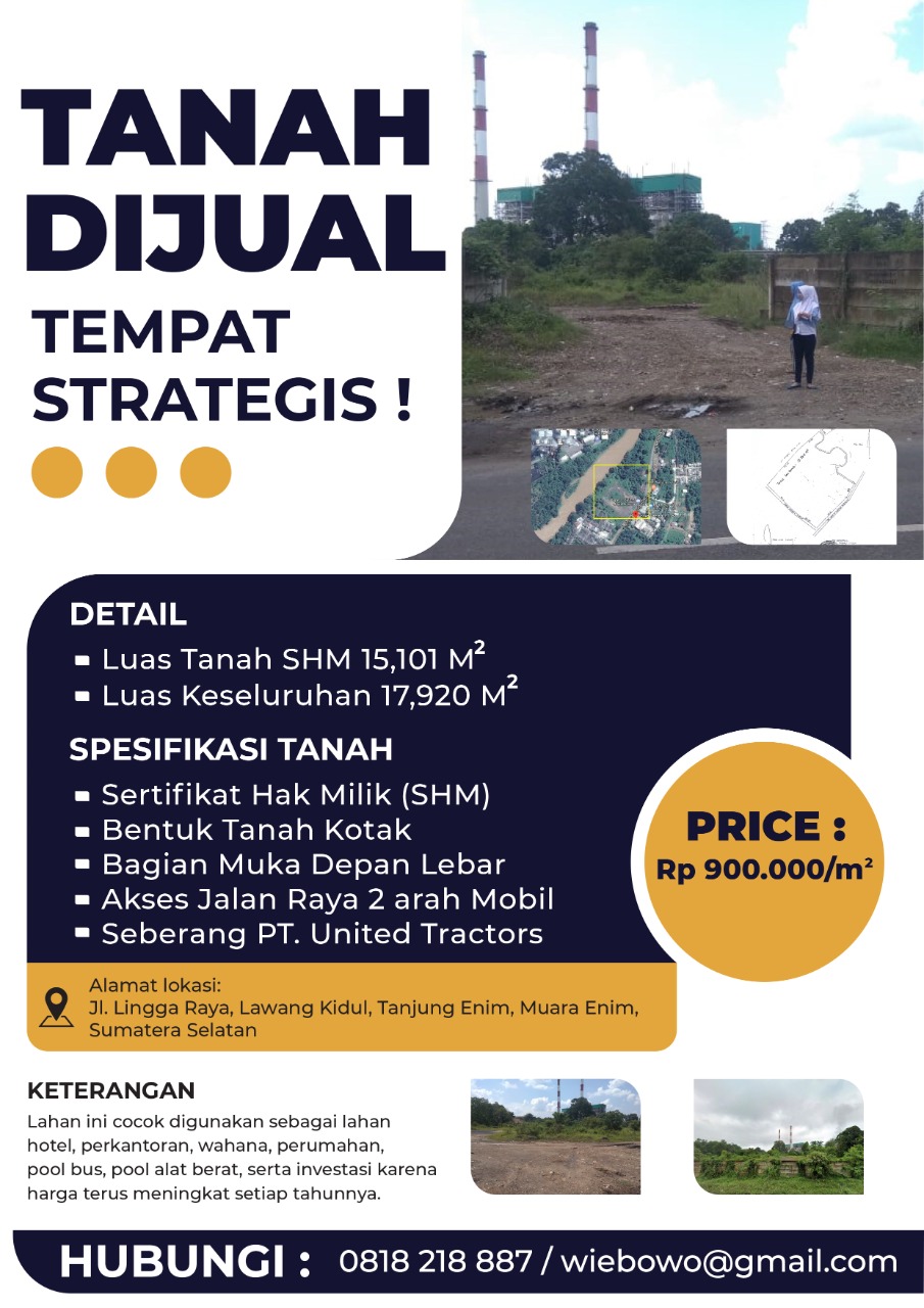Dijual Tanah Tanjung Enim, Muara Enim, Sumatera Selatan